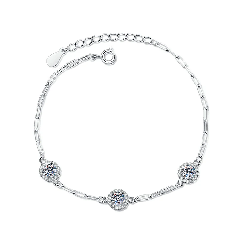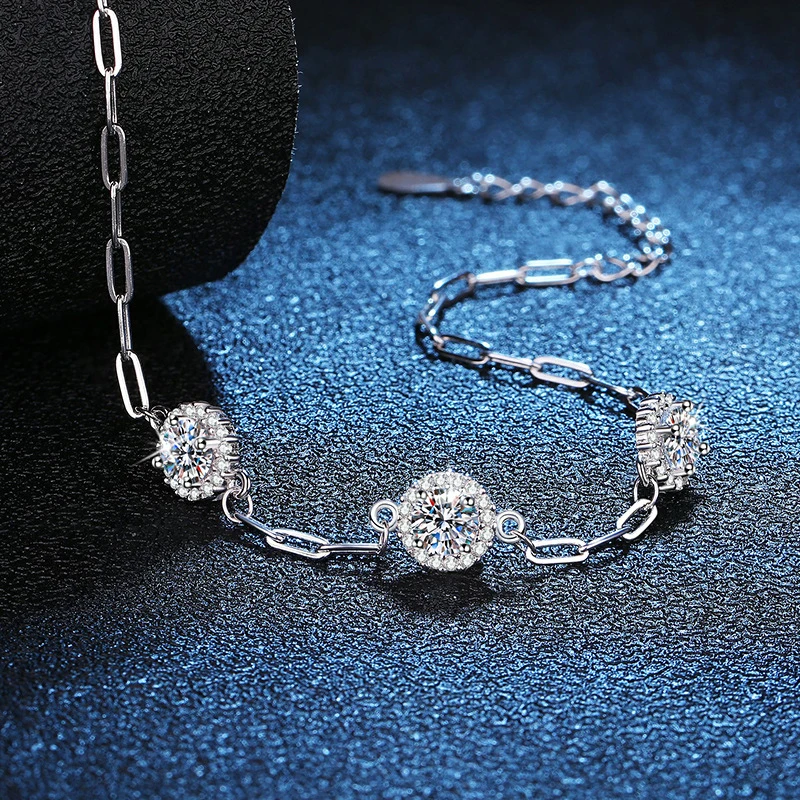 This refined moissanite bracelet combines premium 925 sterling silver with elegant gold plating to create a statement piece worthy of your most important moments. Each round lab diamond is precision-cut to maximize brilliance and fire, offering the visual impact of fine gemstones at a fraction of the cost. The secure setting ensures lasting durability through years of wear, whether you're dressing for a wedding, anniversary celebration, or simply elevating your everyday style. Expertly crafted for those who appreciate quality craftsmanship and timeless design, this bracelet stands as a testament to sophisticated taste and smart luxury.