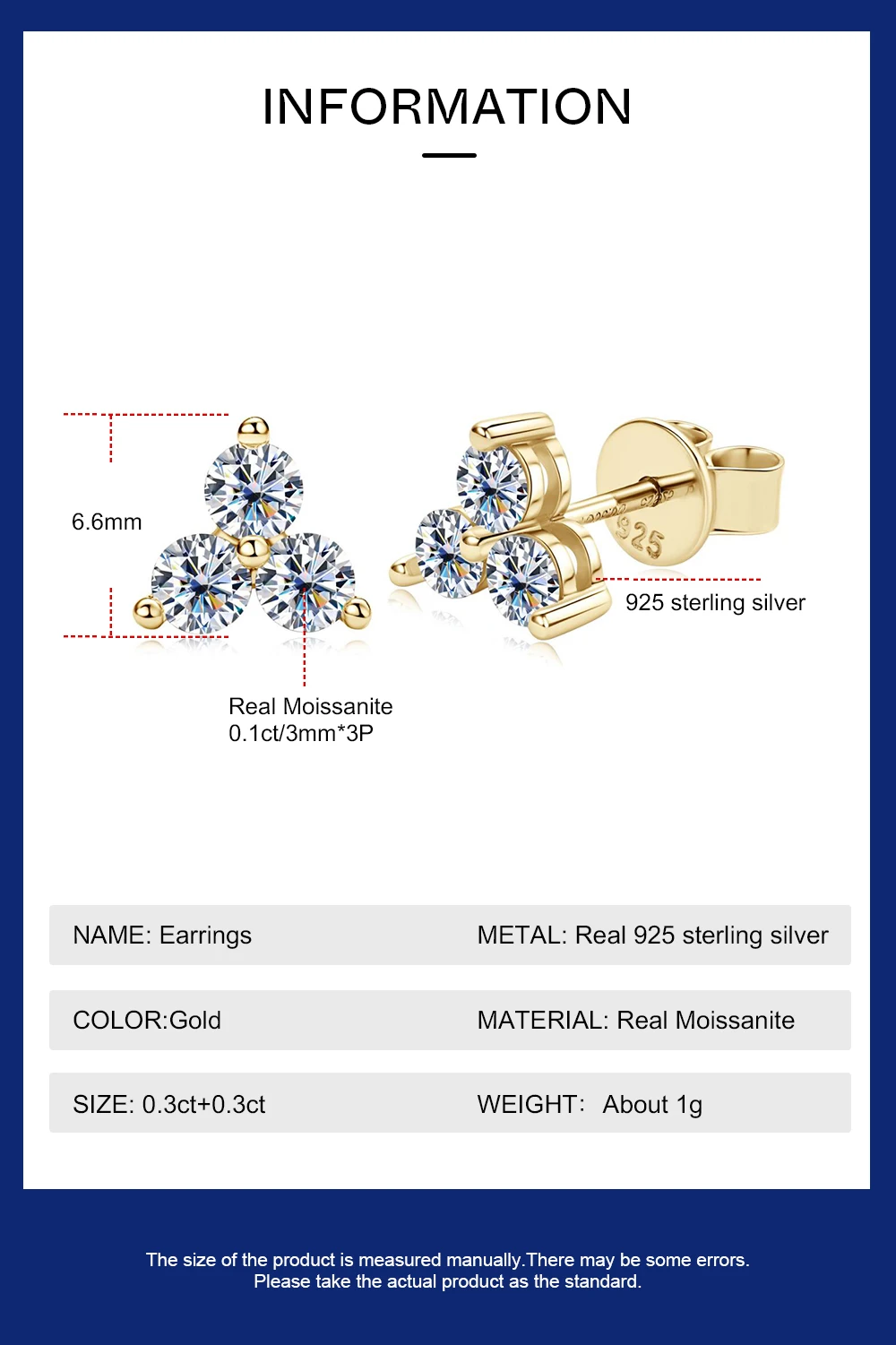 Stud Earrings 100% 925 Sterling Silver 3mm D Color Diamond Earring for Women Girl Birthday Gift with GRA 0.3CT Clover Moissanite