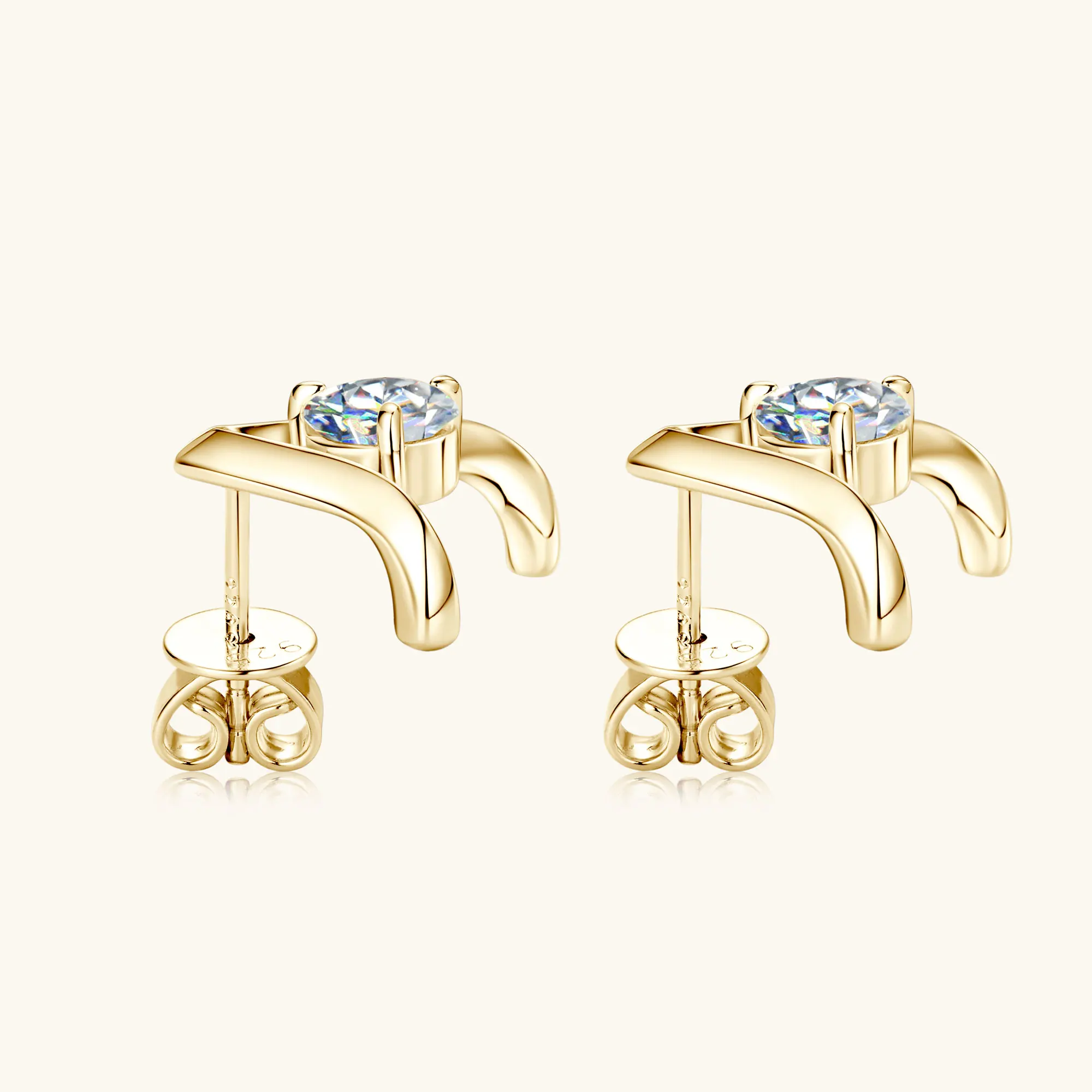 925 Sterling Silver Earrings: Gold Color Stud Earrings