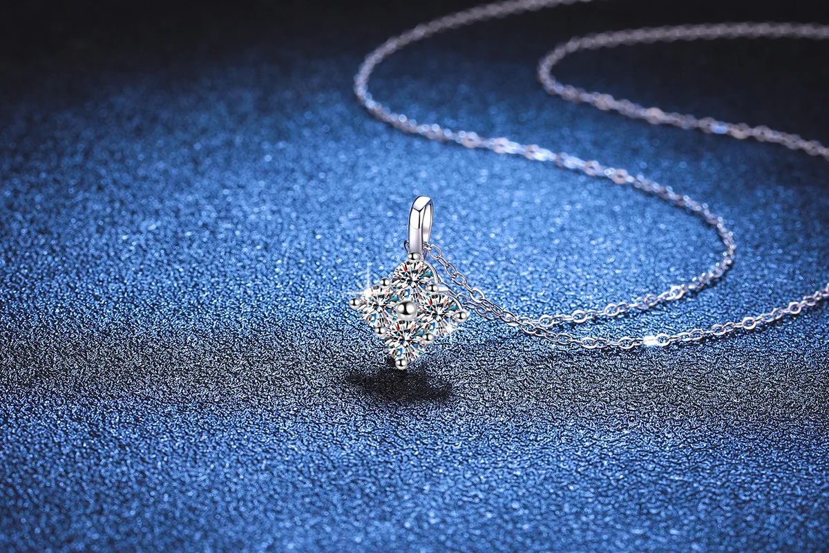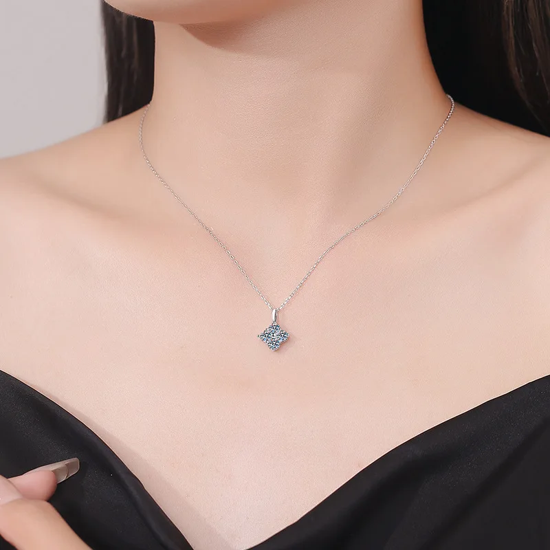 Sugar Cube Pendant Necklace 1.2Ct Moissanite PT950 Platinum Women Light Luxury