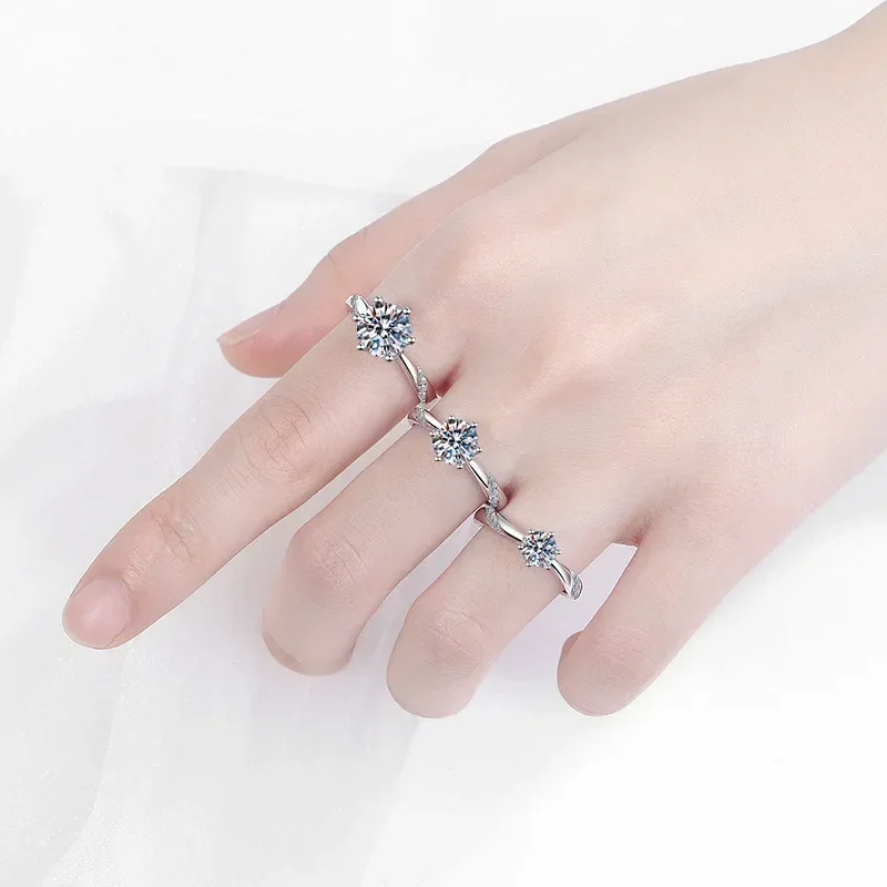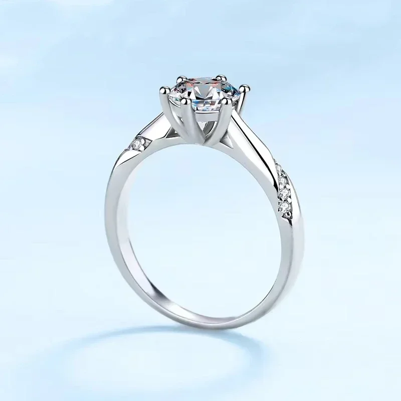 Mark life's most meaningful moments with this exquisite engagement ring, expertly designed in premium 18K white gold and PT950 platinum. The breathtaking 0.5 to 1 carat moissanite diamond delivers remarkable brilliance and fire, rivaling traditional diamonds while offering exceptional value. Whether you're celebrating an engagement, anniversary, birthday, or expressing your love this Valentine's Day, this timeless band makes a powerful statement. The durable platinum-reinforced setting protects your investment for years to come, while the luminous white gold showcases the stone's radiant beauty. A meaningful gift for the woman who deserves something truly special.