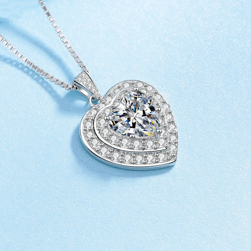 Dare to make a statement with this stunning heart-shaped necklace that commands attention. Featuring a brilliant 4CT moissanite diamond set in luxurious PT950 platinum and 18K white gold, this piece radiates uncompromising elegance. Perfect for the woman who refuses to settle for ordinary—whether celebrating an engagement, milestone birthday, or simply treating herself. The exceptional sparkle and durability of moissanite deliver diamond-like brilliance without compromise. A bold declaration of sophistication and timeless beauty that speaks volumes about your refined taste.