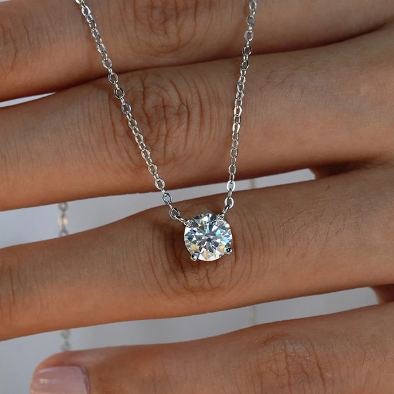 Women Valentine's Day White 18K Gold Daughter Birthday Necklaces 0.5/1/2CT Moissanite Pendant Girl Wedding PT950 Christmas Gift