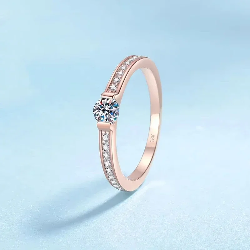 Celebrate love and commitment with this stunning 18K rose gold wedding band, featuring a brilliant 0.3CT moissanite diamond that sparkles with timeless elegance. Crafted with meticulous attention to detail, this ring combines luxury with lasting beauty, making it the perfect choice for engagements, anniversaries, or special milestones. Whether you're honoring a girlfriend, daughter, or treating yourself, this fine jewelry piece delivers sophisticated style and meaningful sparkle. The warm rose gold setting enhances the diamond's radiance, creating a piece you'll treasure for a lifetime. An ideal gift for Valentine's Day, birthdays, or any occasion worth celebrating.