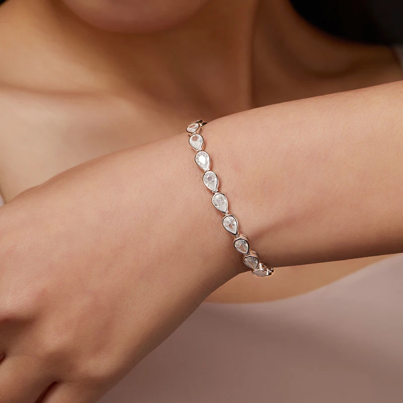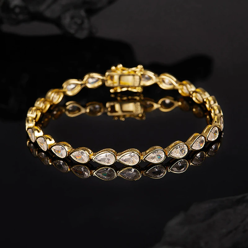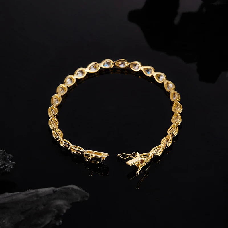 Make a bold declaration with this striking tennis bracelet that commands attention. Crafted from pure S925 silver with 18K plating, it showcases breathtaking pear-cut zircon moissanite stones in 4x6mm dimensions that catch light from every angle. This unisex luxury piece shatters expectations—equally stunning for weddings, anniversaries, or anyone ready to turn heads. The meticulously linked chain design ensures durability while maintaining that coveted high-jewelry aesthetic. For the fearless who refuse to blend in.